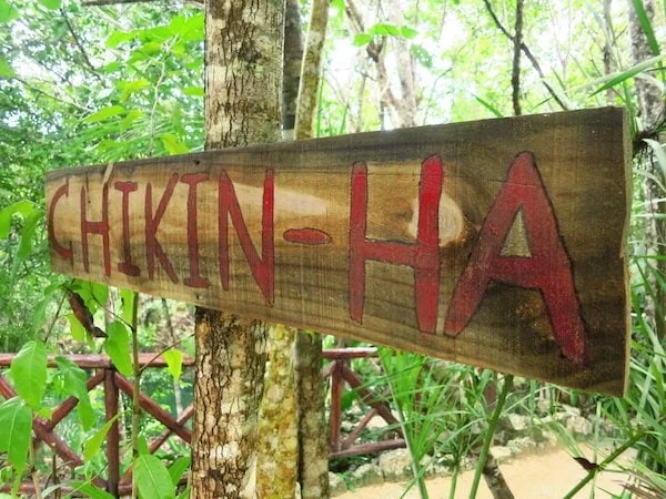 Zum Einstieg der Cenote Chikin Ha gelangt man über einen ca. 50 m kurzen Fußweg. Der Ein- und Ausstieg ist mit Steintreppen versehen, es kann aber auch mit einem Sprung ins Wasser eingestiegen werden.